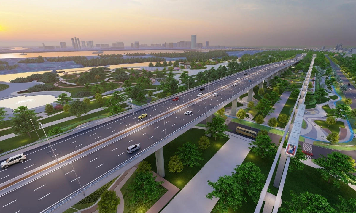 Dự án trục đại lộ cảnh quan sông Hồng bao gồm hai tuyến cao tốc đô thị, tàu điện monorail, công viên cảnh quan... dự kiến có tổng đầu tư 338.000 tỷ đồng.