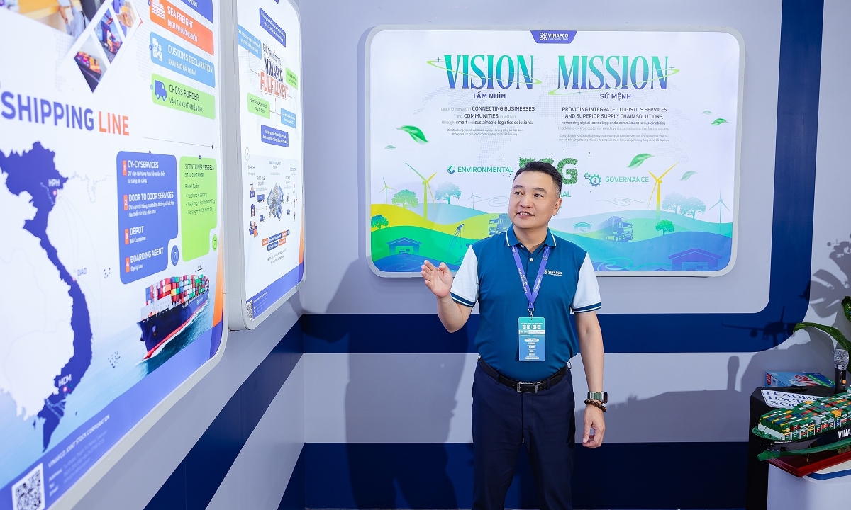Tại Vilog 2025, Vinafco trình làng hệ sinh thái dịch vụ toàn diện từ kho vận, vận tải đa phương thức đến giải pháp quản lý chuỗi cung ứng. Hệ thống được xây dựng trên nền tảng gần 40 năm kinh nghiệm và định hướng phát triển xoay quanh khách hàng, ứng dụng công nghệ hiện đại.